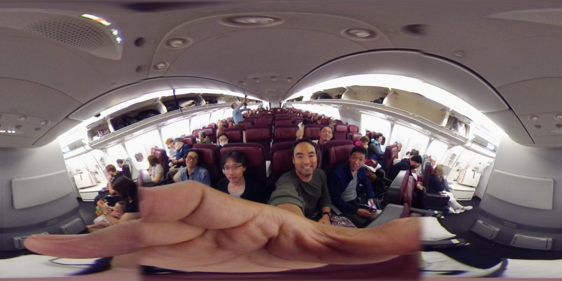 まずは写真。薄暗い飛行機の中での撮影。パノラマカメラの基本機能だが、やっぱり臨場感があり旅の思い出が鮮明に蘇りますね。